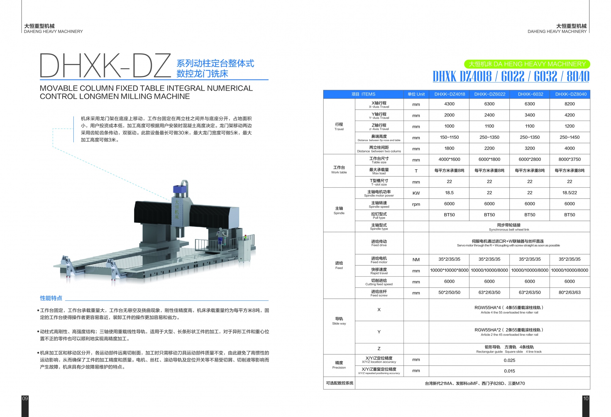 大恒數(shù)控龍門銑床概述及主要用途規(guī)格
