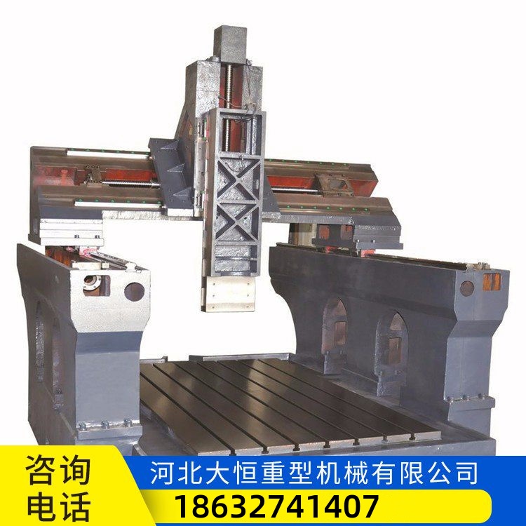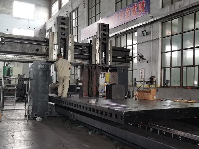 機(jī)床的結(jié)構(gòu)特點(diǎn):固定式床身、工作臺(tái)移動(dòng);主軸箱隨溜板上下移動(dòng);亦可沿橫梁左右移動(dòng)實(shí)現(xiàn)三軸聯(lián)動(dòng);配置18.5KW主鏜銑頭。機(jī)床主銑頭具有銑削、鏜削、鉆削、锪孔等功能,適用于機(jī)械、鋼鐵、能源、汽車(chē)、航空航天、兵器、船舶等行業(yè)的大、中型零件的加工。配備附件銑頭后可實(shí)現(xiàn)工件的一次裝夾,安裝直角銑頭可五面加工,一機(jī)多用,提高了工件的。